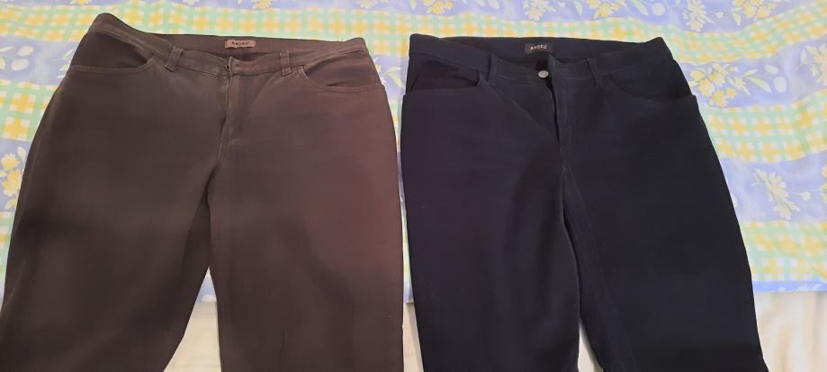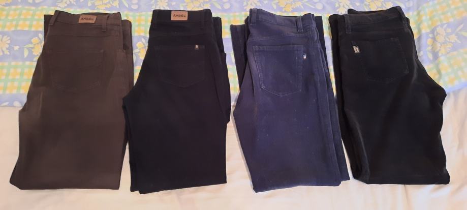 Prodaju se 4 ženske hlaće,veličina 42, 2 ANGEL KEPER rastezljive po širini, crne i smeđe, i 2 samterice veličina 42, plave i crne, tople, idealne za zimu i hladne dane, 2 puta nošene, očuvane, sve u kompletu 4 hlaće za 8 eura