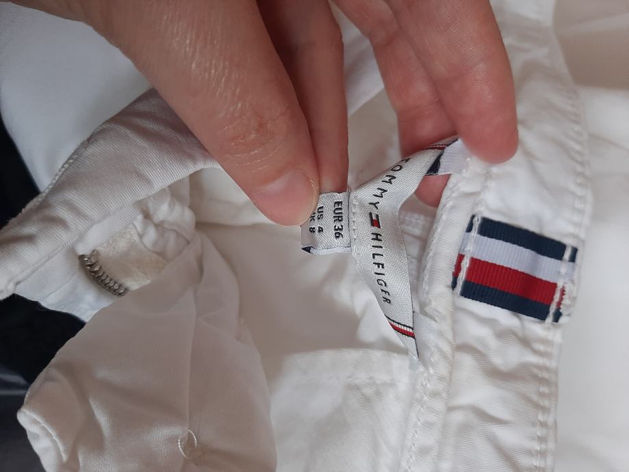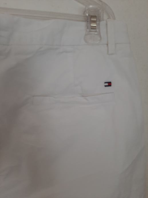 Bijele prekrasne ženske hlače Tommy Hilfiger. Jednom obućene, kao nove. Rastezljive. Vel. 36. Širina struka 38cm, širina bokova 49 cm bez rastezanja, dužina od vrha pasice do dolje 101cm.