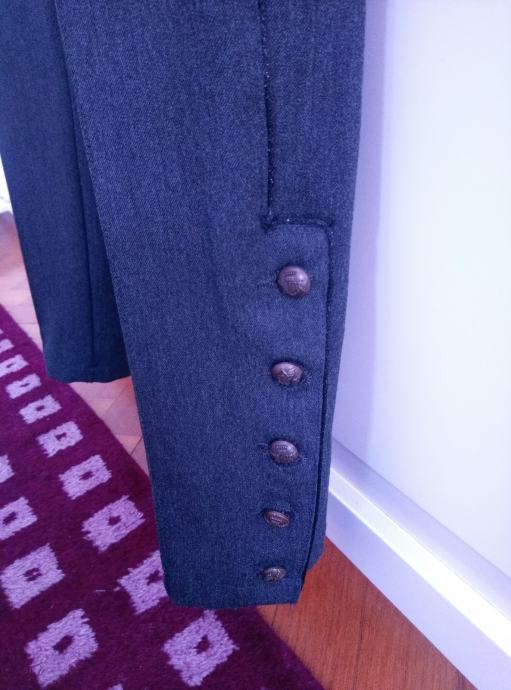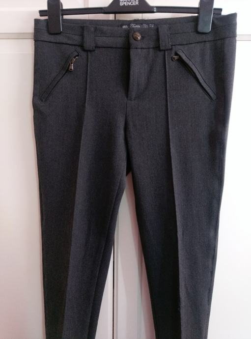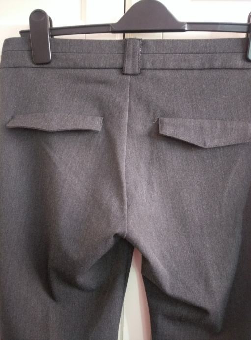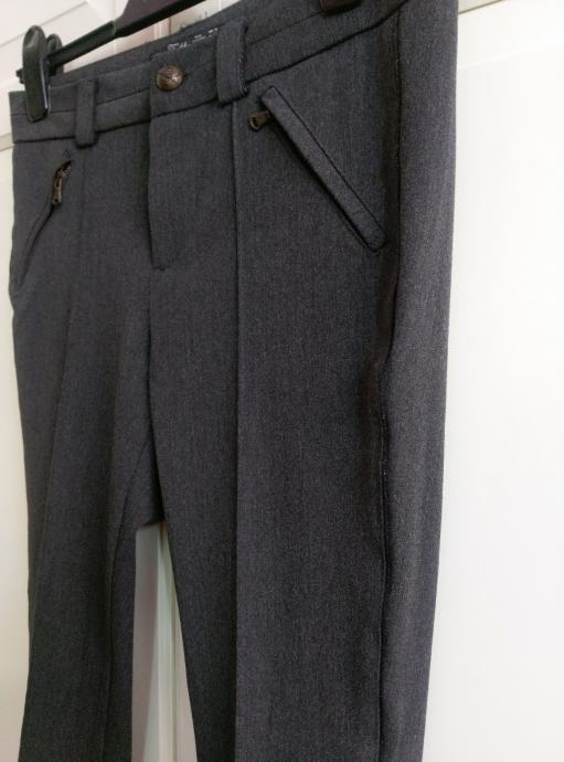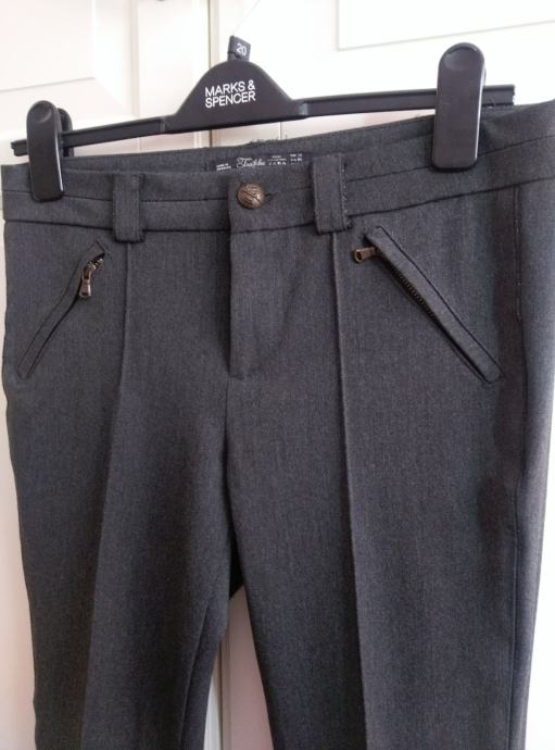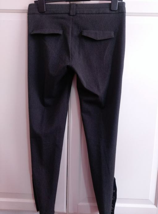 Prekrasne hlače na crtu, sa zanimljivim detaljima, s ukrasnim gumbima sa strane nogavica, te ukrasnim obrubima. Antracit sive boje, vel. 38, Zara collection.