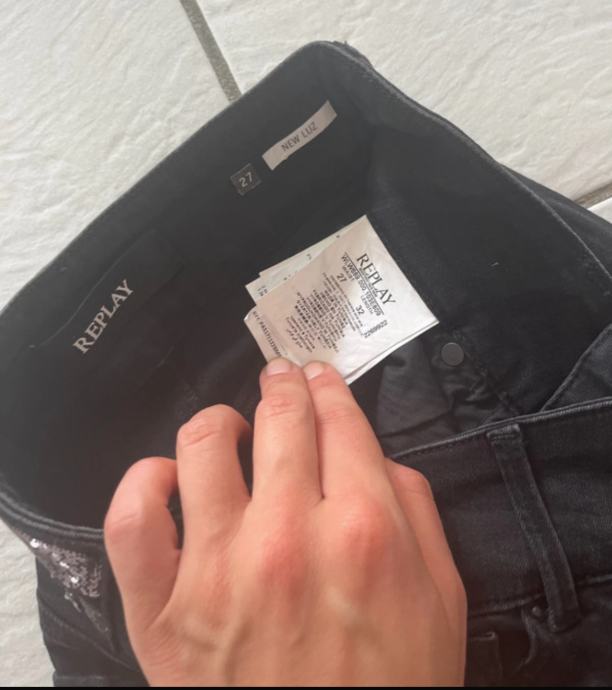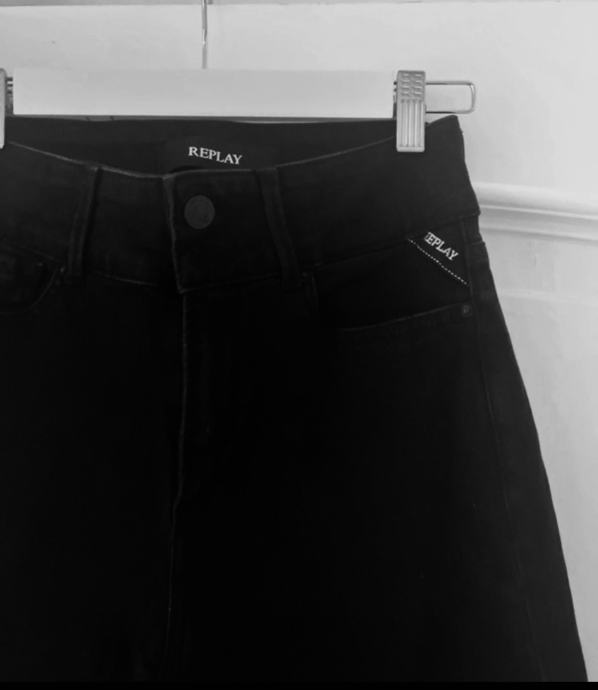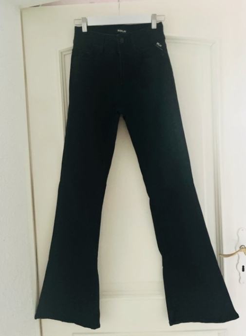 Ženske Replay crne traperice, trapez oblika, srednje visok struk. Nisu nošene, ali im je odrezana etiketa. Veličina je 27/32 (struk/dužina). Materijal je 98% pamuk i 2% elastan.