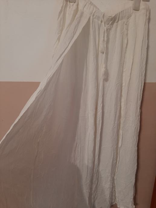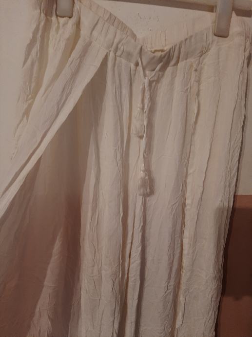 Prekrasne nove bijele široke hlače na rasporke s prednje strane. Vrlo atraktivne. Vel. piše L, ali može i XL
