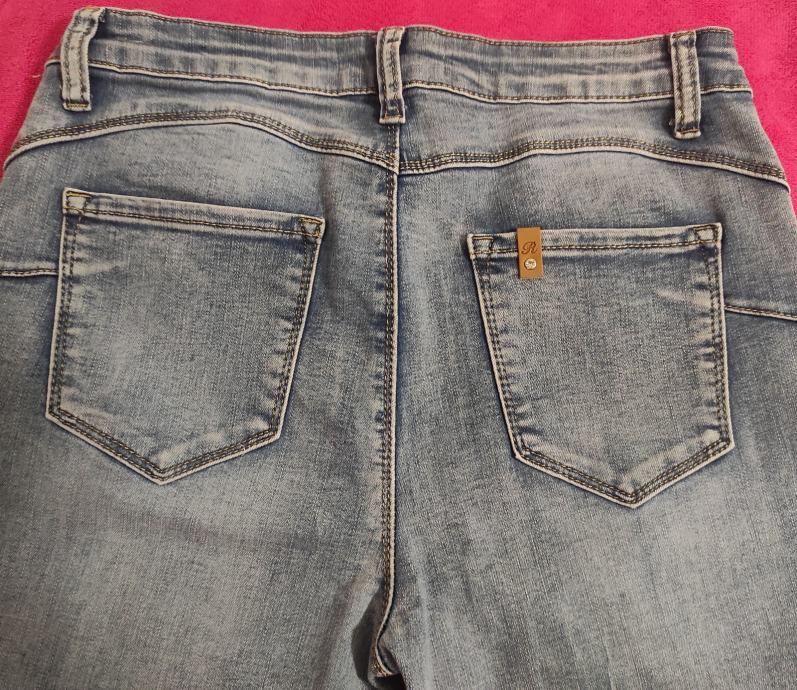 Prodajem ženske traperice, svijetlo plave boje (svjetlije nego na slikama), idu na lagani trapez, veličina L, jednom nošene (meni malo velike), bez oštećenja, duljina traperica je 110 cm. Pogledajte i moje ostale oglase, nisam za zamjene jer se rješavam viška.