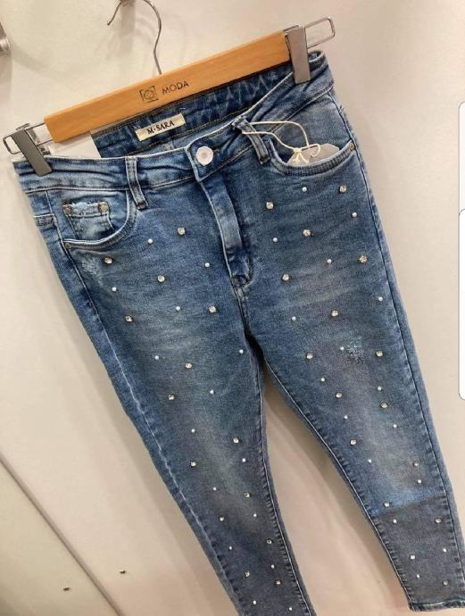Nove ženske traperice sa cirkonima,ne nošene. visoki struk