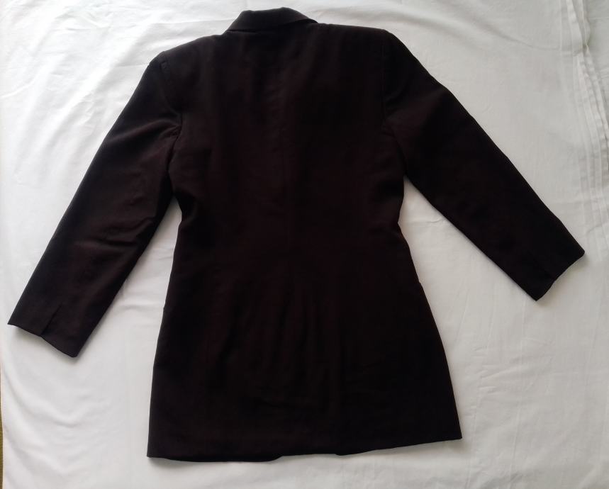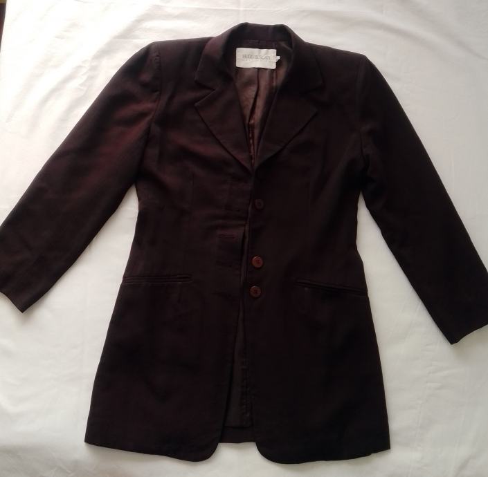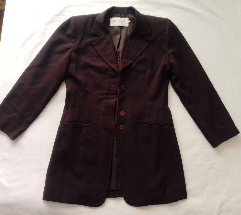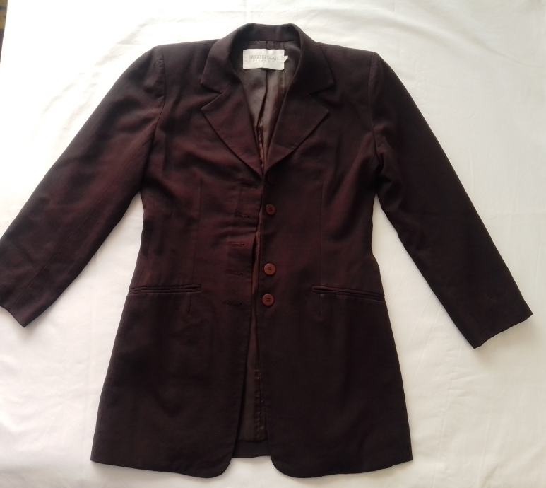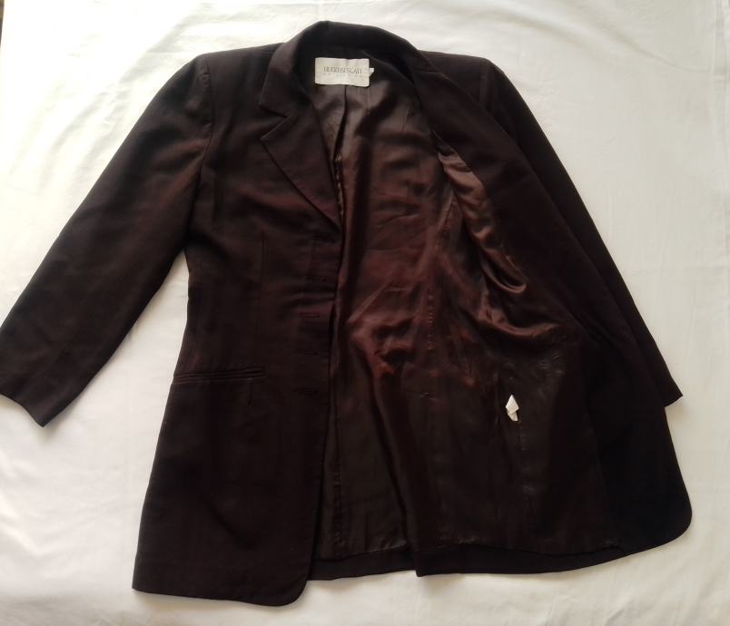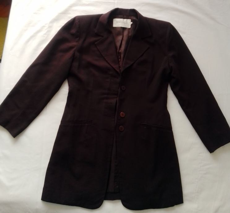 Moderan, lijepe čokoladnosmeđe boje, očuvan, klasičnog kroja - izvrsno stoji, 2 džepa na prednjici, vel. S (36/38), marke "Hugo Buscati", kupljen u Milanu