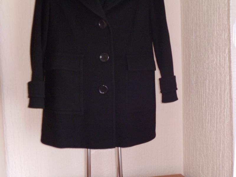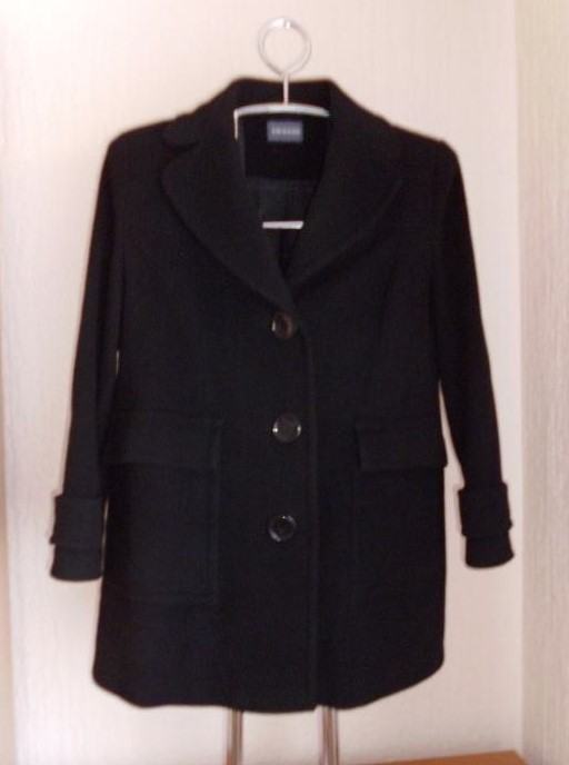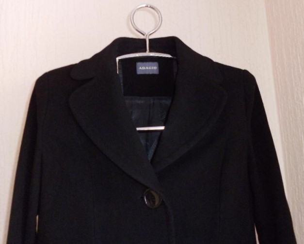 " Adagio " ženski crni kaput vel. 42, sirovinski sastav 60% vuna, 20% kašmir, 20% polyamid, podstavljen, bez oštećenja.
