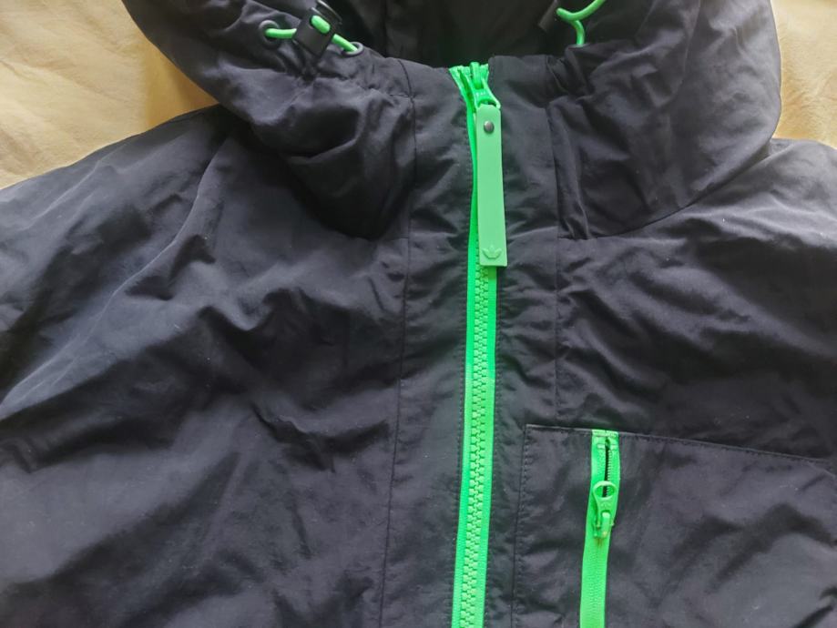 Softshell jakna, otporna na vodu i vjetar, izrađena od recikliranog materijala. Nova (nošena dva puta - ne odgovara veličina). Jakna je oversized kroj, veličina je XS ali je dosta velika. Ima tri džepa. Stanje i detalhjne dimenzije se mogu vidjeti na slikama. Plaćena 120 eura na sniženju, prodajem za 40. Cijena fiksna.