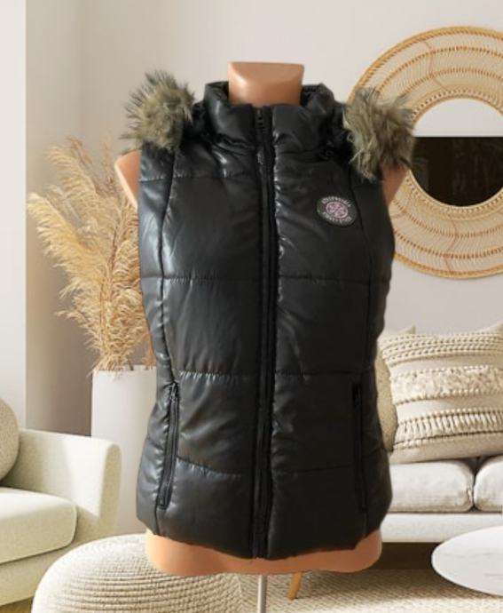 AEROPOSTALE pre-predivan prsluk vel.M, realno kao S veličina, 34/36, novo, samo oprano. Kupljen u USA, kvalitetna i skupa USA marka odjeće iz New Yorka, predivan prsluk, kopčanje na cif i na drukere, ima kapuljaču i krzno na kapuljači, te bočne džepove. Predivan uživo i predivno stoji, meni nažalost samo stoji u ormaru otkad je kupljen. Može i kao dječja veličina 158/164. Prsluk je koštao $70.