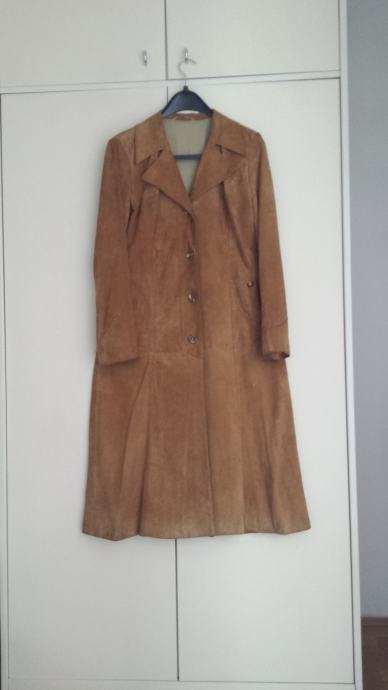 Svijetlo smeđi dugi mantil br. 42 od brušene koże malo nošen prodajem.