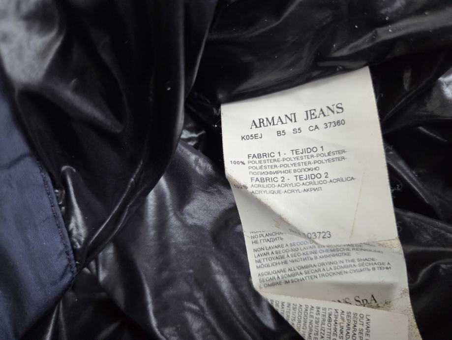 Armani Jeans zenska laka tanka jakna sa tankim slojem perja original veličina EUR 40- USA 4 sa mjerama - širina u ramenima 40 cm, prsa 80 cm, visina od dna okovratnika 80 cm, dužina rukava od ramena 62 cm...dva vanjska kosa džepa- metalni cif....umjetni materijali crna boja....nema greške, svi cifovi rade...pogledajte i ostale moje oglase