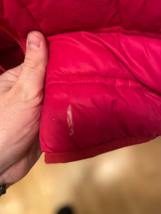 Prodajem žensku Benetton jaknu talijanske veličine 46. Vidljivo jedno oštećenje prikazano na slici (poderano oko 1 cm). Također, na drugoj slici se vidi i kako je na drugom mjestu jakna već zakrpana.