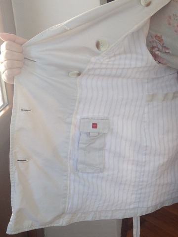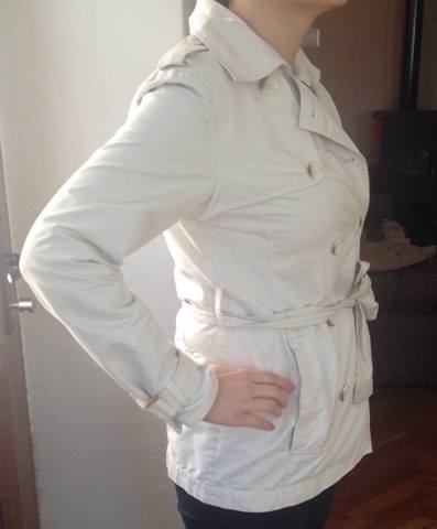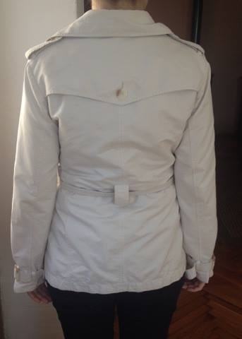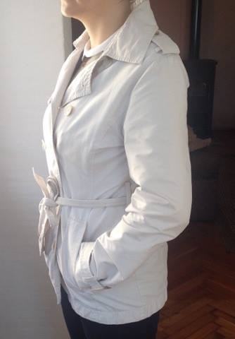Bež/bijeli baloner, veličin M, marka Esprit. Nosen svega 2-3 puta, kao nov, skroz očuvan. Praktican i moderan. Ima 2 kosa džepa. Odlicno stoji, ima traku koja ide oko struka. Kraći. Postavljen. Kvalitetan.