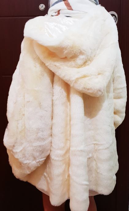 BIJELA JAKO TOPLA BUNDA,KAO PELERINA MODEL,PREKRASNA SA KAPULJAČOM.L