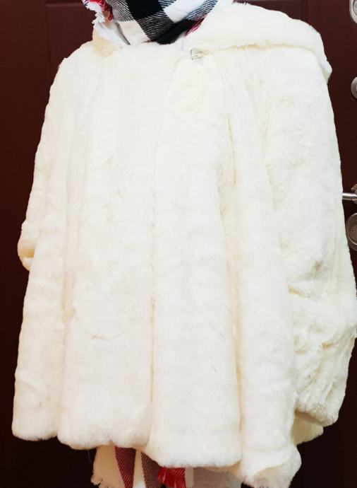 Prekrasna duga sa kapuljačom jako topla bijela bunda model kao pelerina