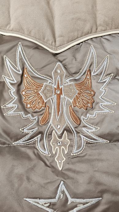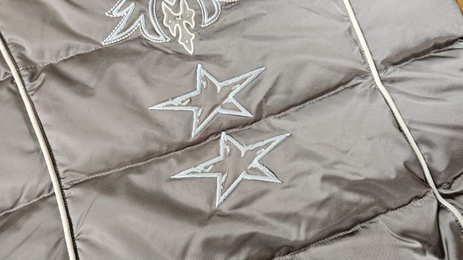 Sa sitnim tragovima boje od printa sa unutarnje strane. Sa vanjske nema nikakvih ostecenja ni tragova nosenja.