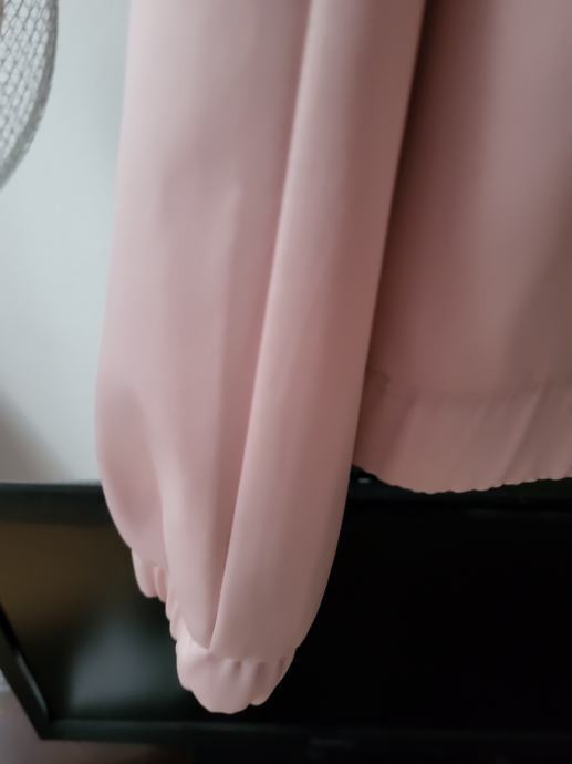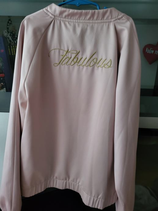 Prodajem jednom obučenu bomber jaknu, marke MOHITO, S boje, veličina 38. Mjere: širina 46cm, dužina 60cm, dužina rukava s vanjske strane 64cm, unutarnje 48cm, a na dnu 13cm (ima guma na rukavu). Sastav: 51% polyester, 30% pamuk, 8% metalic fibre, 5% viskoza. Jakna je u izvrsnom stanju, bez tragova nošenja. Idealna za proljeće/jesen