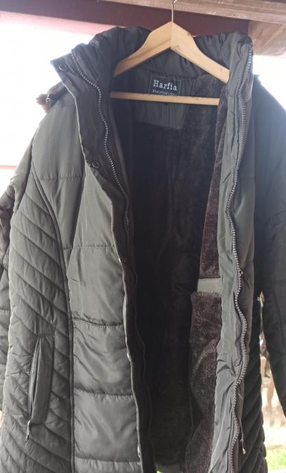 Materijal je 80% cotton, 20 polyester. Vrlo je funkcionalna jer ima i patent i druker dugmad za zakopčavanje, kao i kose džepove sa strane. Unutrašnjost je ispunjena toplim umjetnim krznom i jednim džepom. Nošena je svega par puta, tako da je u odličnom stanju. Meni je višak.