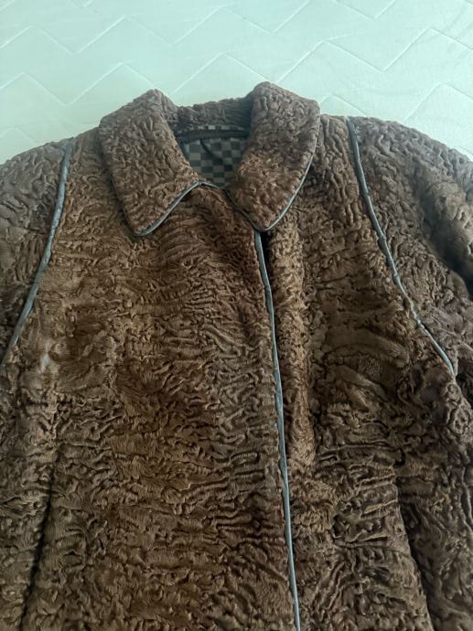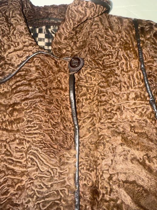 Bunda, prava koža/krzno. Veličina nepiše, veličina je oko 40/42. Dimenzije: širina prsa od pazuha do pazuha 52 cm, dužina rukav 65 cm, širina ramena 39 cm, ukupna dužina 77 cm, širina skroz dolje 67 cm. Bunda je blagi A-kroj.cijena 450€