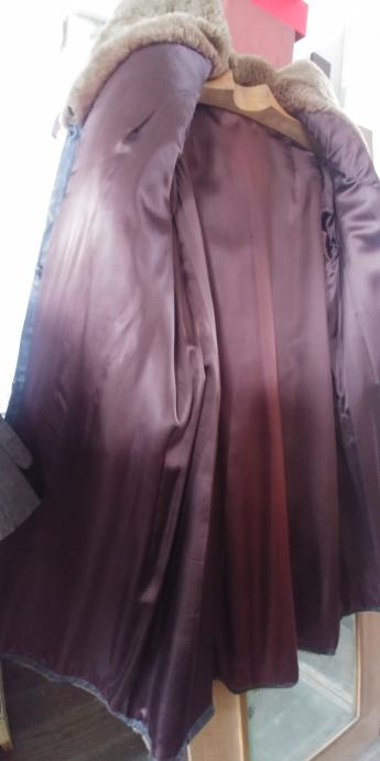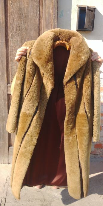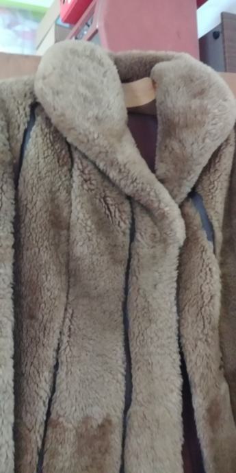 Bunda od krzna ruskog medvjeda, smeđa, u dobrom stanju krzna i podstave. Umetnute okomite trake smeđe kože.