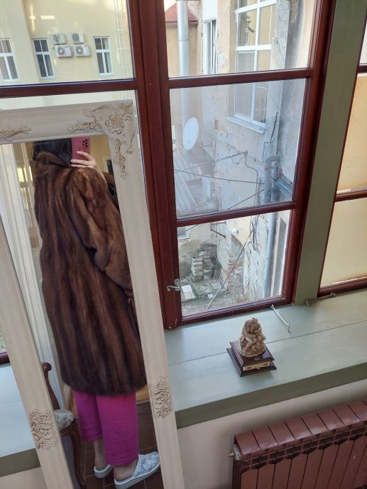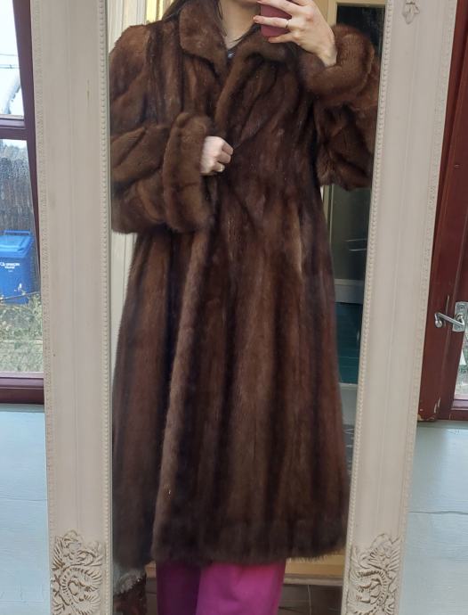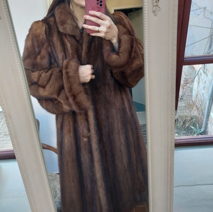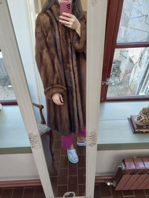 Bunda od nerca, od leđa I iz komada, nije nosena stajala u ormaru. Najbolje odg konfekcijskom broju 38 i 40. Osoba na fotografiji visoka 179cm nosi veličinu 38. Dodatne info na upit!