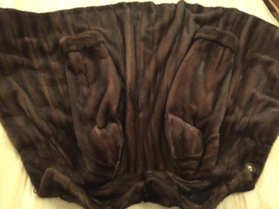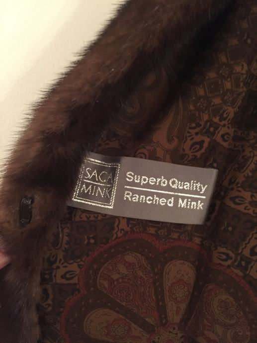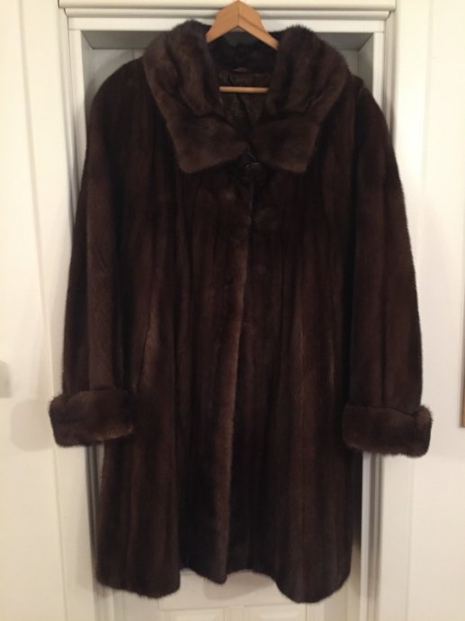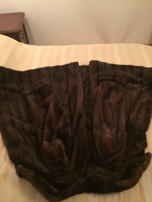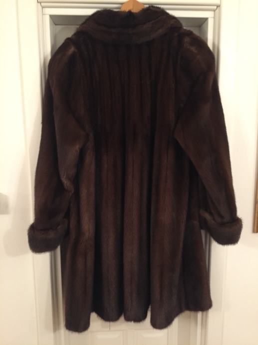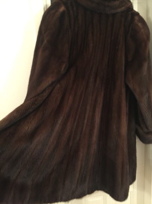 Bunda od nerca, smedja, sjajna, raskosna, duljina 100 cm, sirina ledja 43 cm, rukavi podesivi 60-63 cm, 190 cm sirina ukupna 098231129.