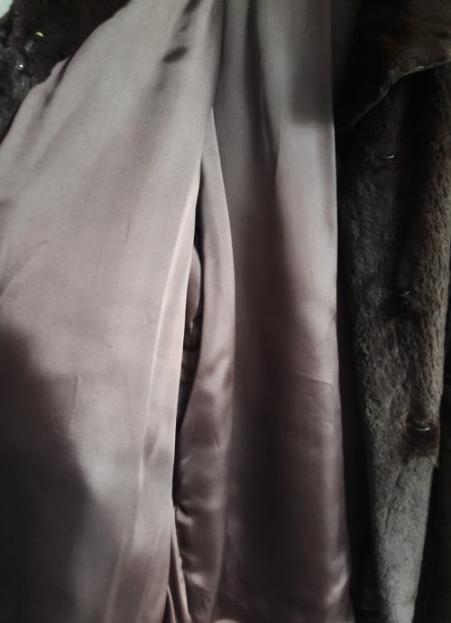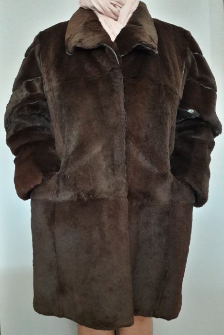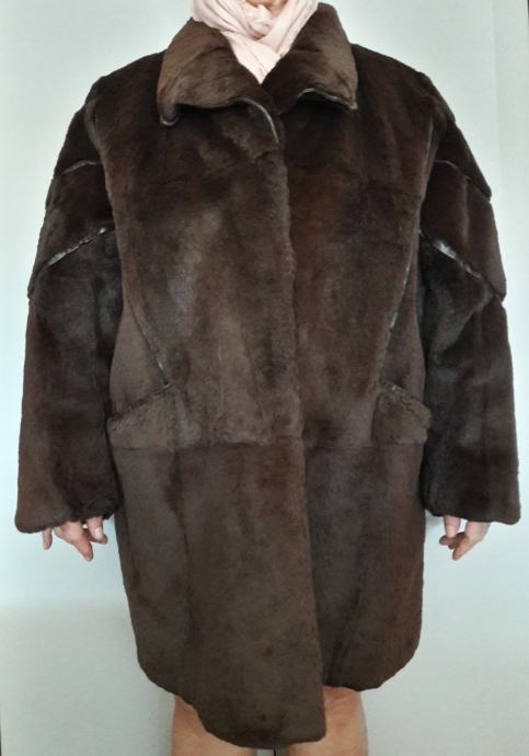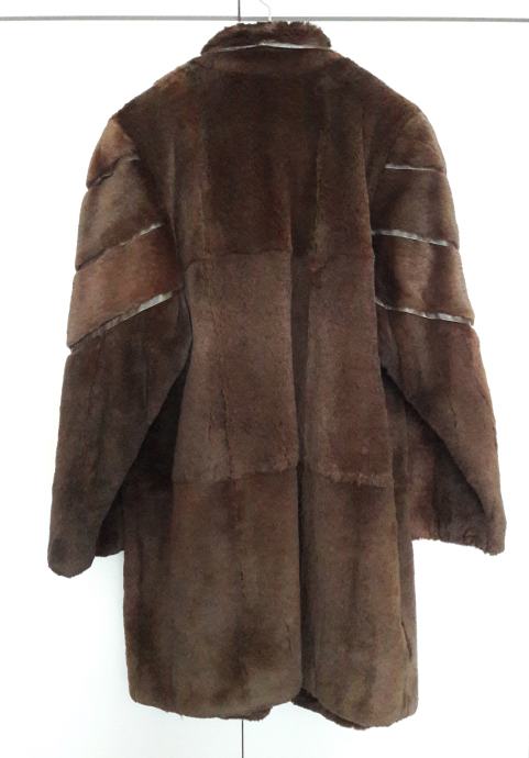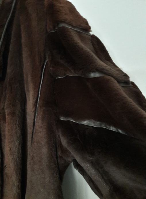 Poprilično je velika, model je iz 80-ih godina pa ima dosta široke rukave i izraženo povišena ramena. Seže do koljena ili malo iznad.