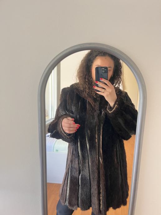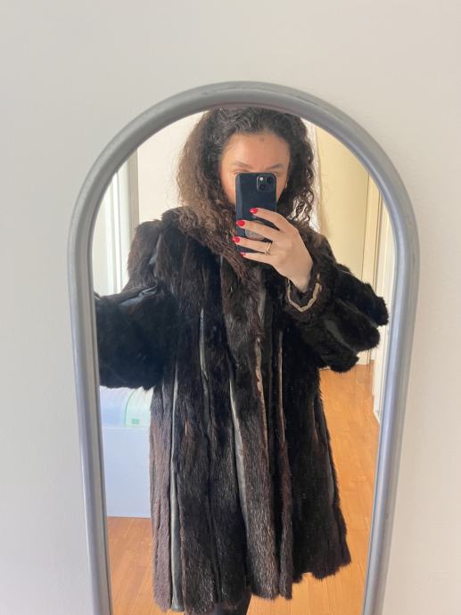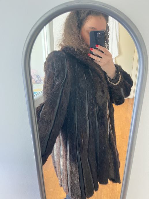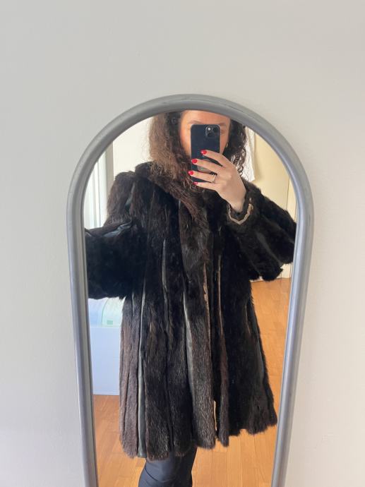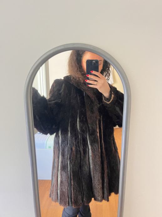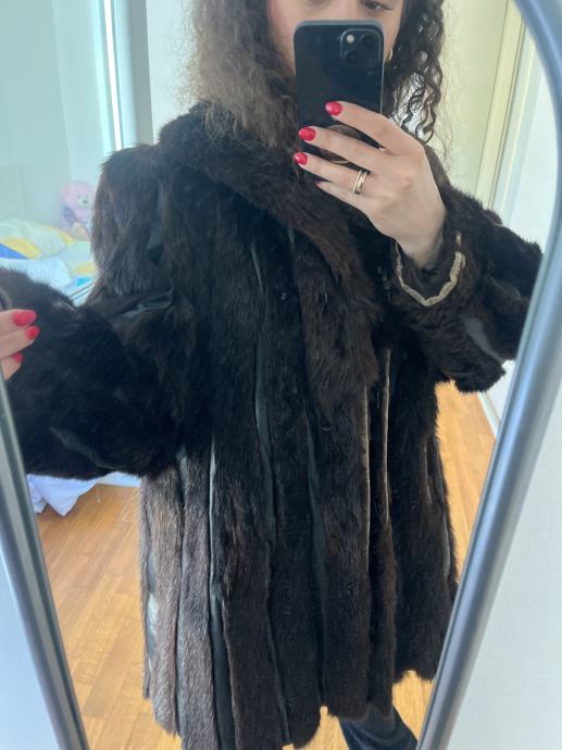 Prodajem iznimno očuvanu bundu od prirodnog krzna nerca u bogatoj tamnosmeđoj boji (Dark Chocolate) s prepoznatljivim prirodnim odsjajem.
