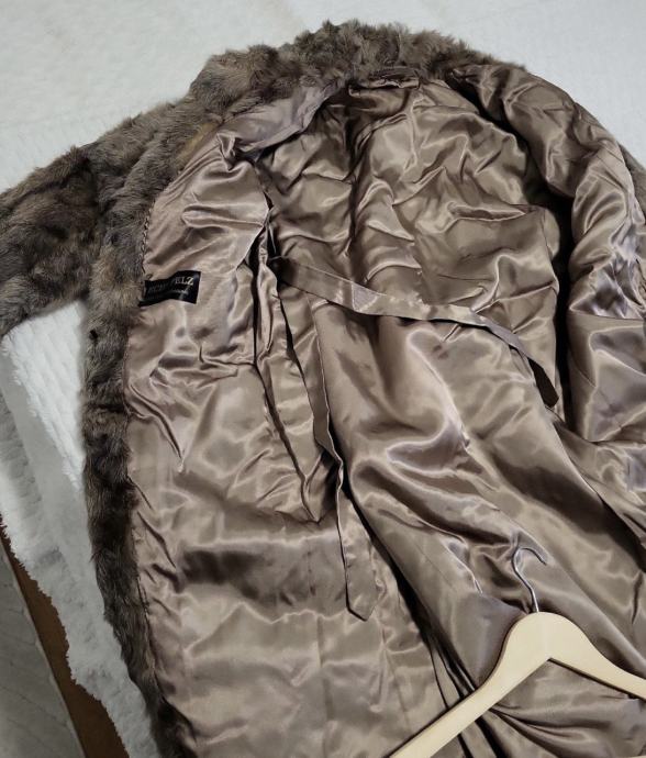 Prekrasna zenska bunda, nova, nosena par puta ipak prevelika. Svilena podstava, bez ikakvih tragova, mirisa, cista i uredna. Duzina ispod koljena. Broj 38, ali moze i na 40, 42…. Odlicna za street style kao i svecanije prilike