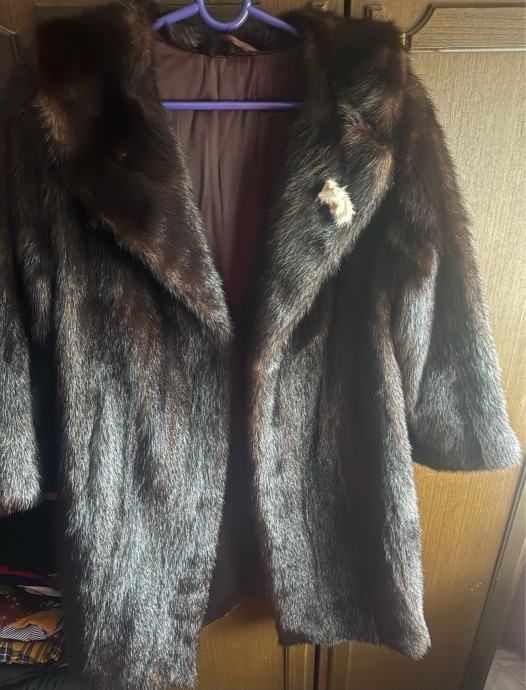 Luksuzna smeđa bunda od pravog krzna, malo nošena i u odličnom stanju. Izgleda kao nova, savršena za hladnije dane s elegantnim krojem i mekanim krznom.