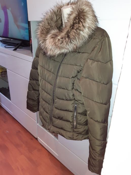 CLOCKHOUSE kraca smeda zimska topla, mekana jakna s asimetricnim patentom, patenti na dzepovima, vel. M. Sirina prsa ( samo prednja strana(: 48 cm, duzina: 56 cm, duzina rukava: 62 cm.