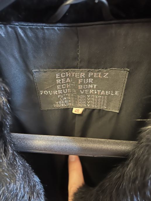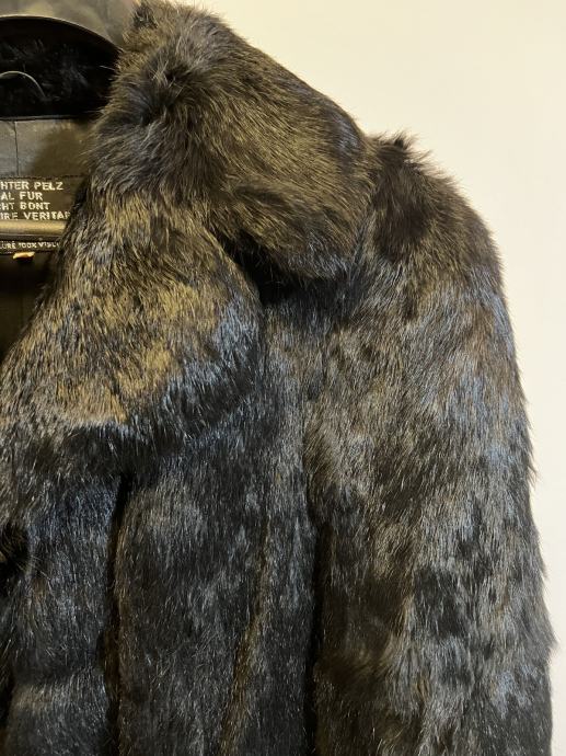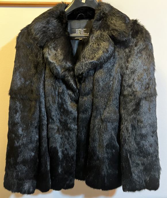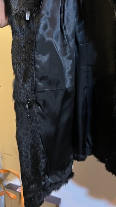 Kratka, crna bunda od prirodnog krzna nutrije, veličine 46.