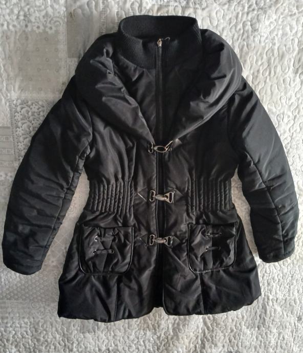 Super zanimljiva crna jaknica veličine 42, ali super ide na 40 ii na 42. U prsima je do 56 cm, duljina je 86 cm.