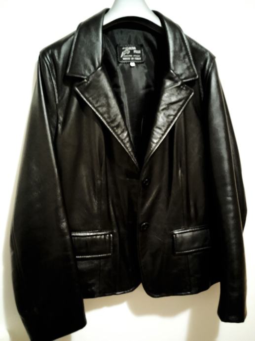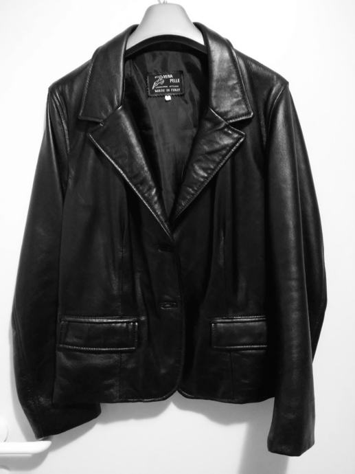 Prodajem gotovo novu crnu kožnu jaknu, elegantna i lagana, talijanske proizvodnje, podstava 100% viskoza, 2 preklopna đepića,