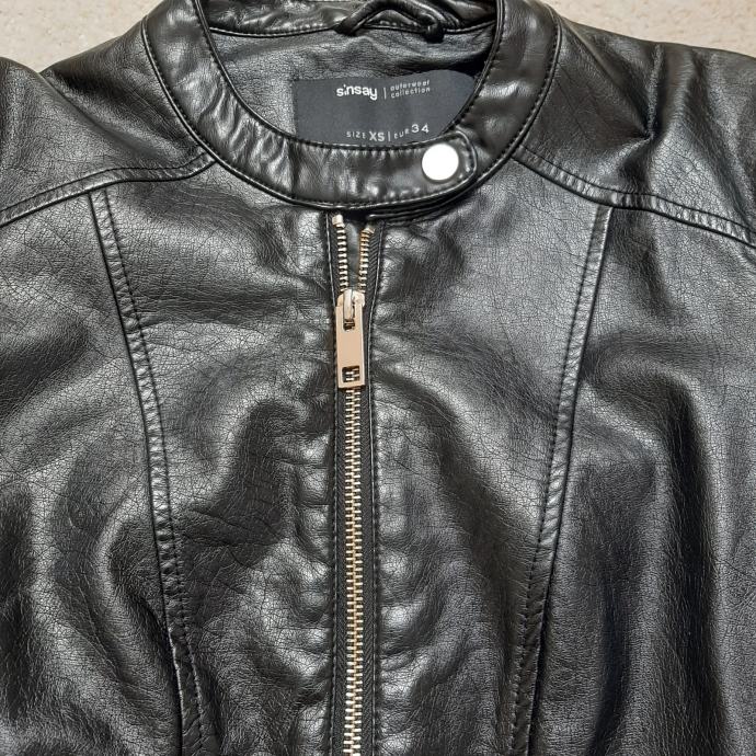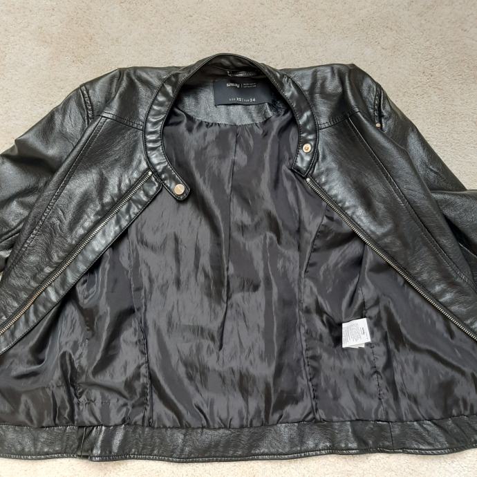 Crna kratka kožna jakna 34 Sinsay novo, umjetna koža
