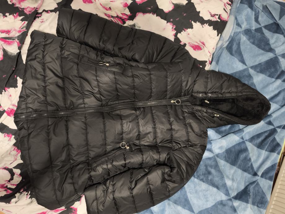 Prodajem novu, crnu jaknu s kapuljačom i dva džepa na cif u koja bez problema stane mobitel. Jako topla, podstavljena je crnim krznom, čak i kapuljača. Mjere su vanjske pa oduzmite par cm koji otpadaju na krzno. Prsa 63 cm, dužina 85cm, rukav 61cm. Jakna je prostrana, nisu predugi rukavi, malo je strukirana. Boja je crna mada na nekim slikama ispadne drukčije. Ja sam si naručila krivu veličinu. Čakovec okolica Vž može primopredaja, ako šaljem paket boxom moja Pt.