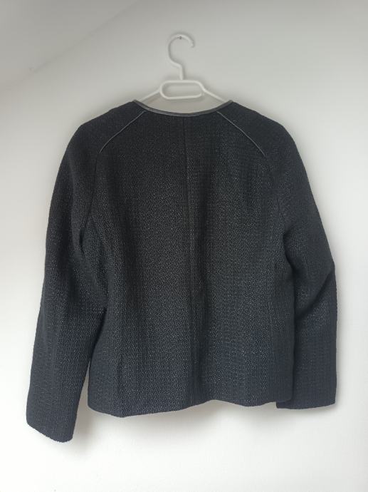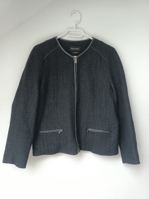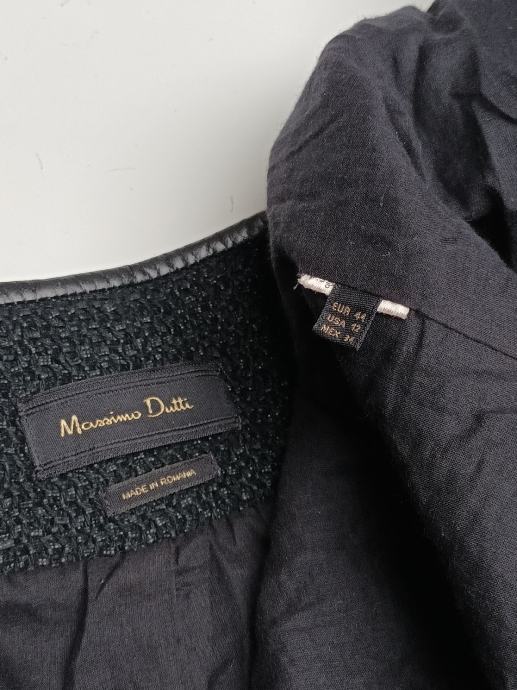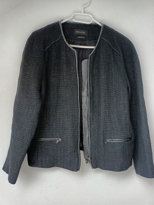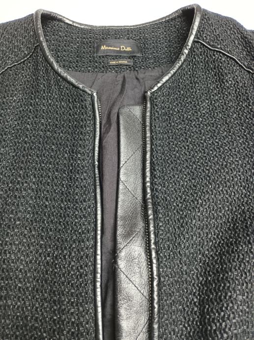 Crna tvid jakna Massimo Dutti 44 sa kožnim umetkom koji je na obrubima kod džepova i po sredini kad je otkopčana, jako kvalitetna i skupo plaćena bez oštećenja