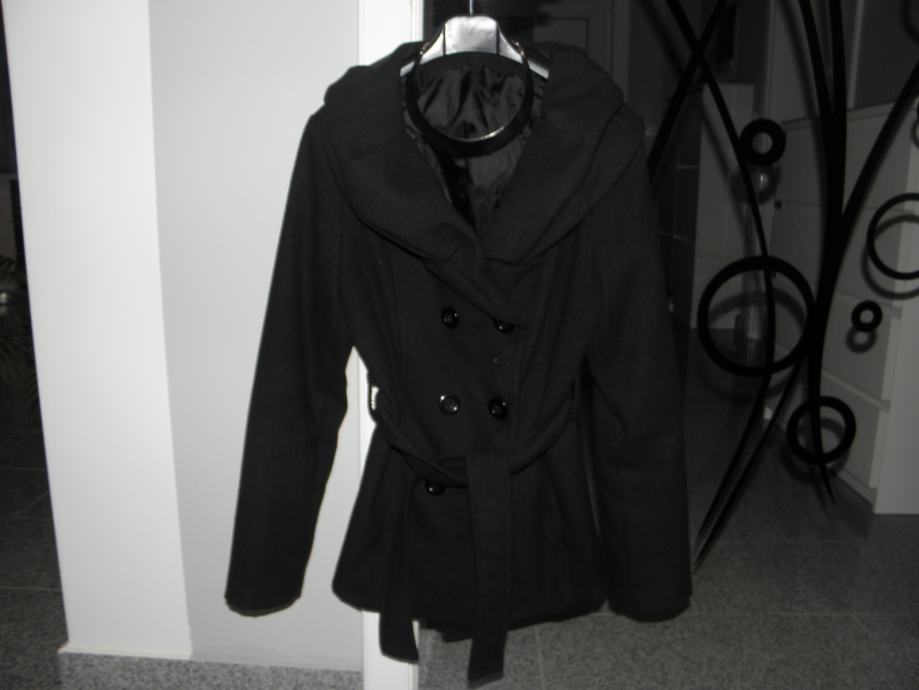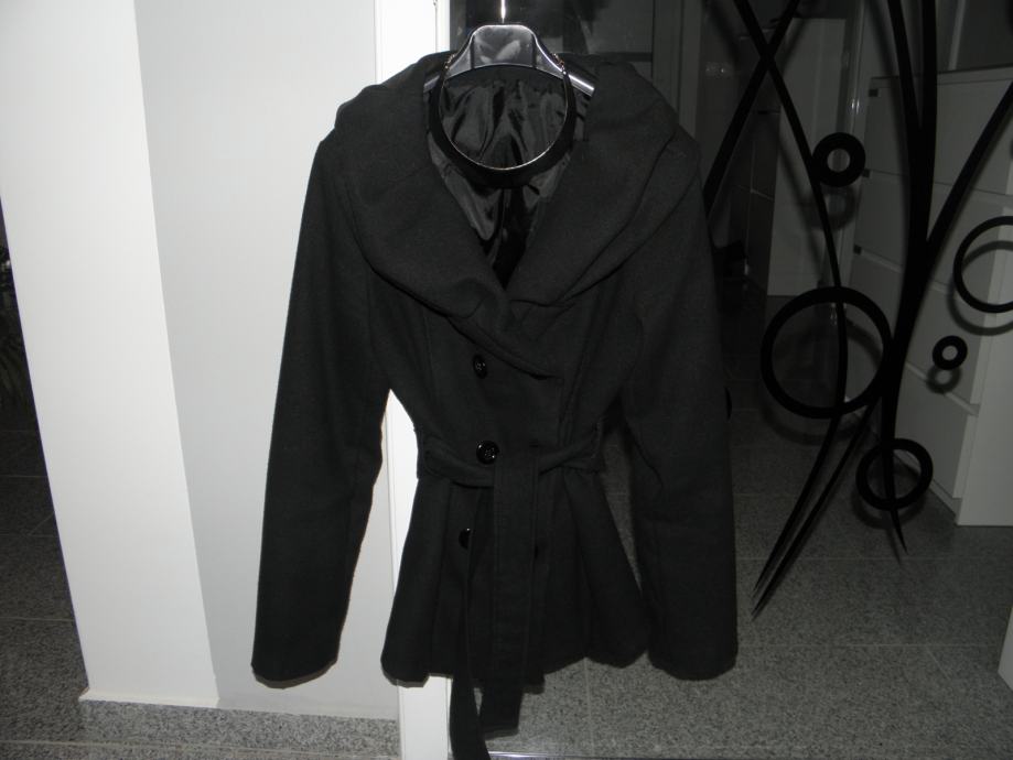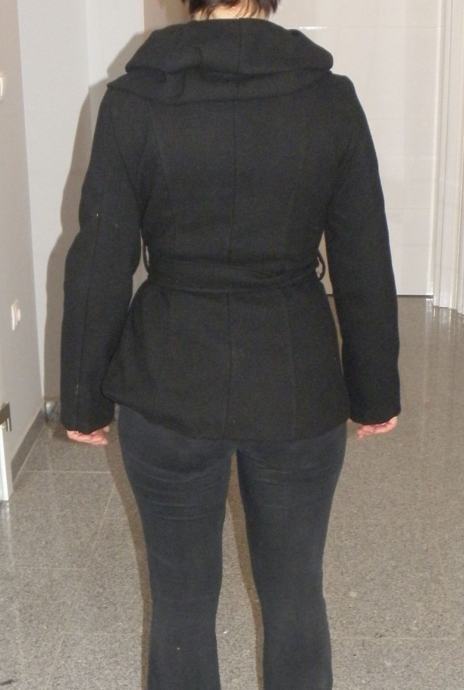 crni kaput, M veličine, malo nošen, kao nov, s pojasom
