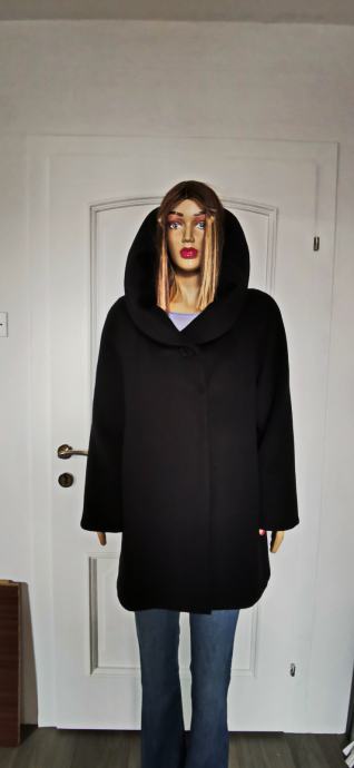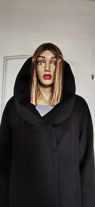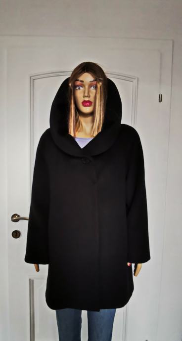 Crni kvalitetan ženski kaput original CINZIA ROCCA broj L-XL, posebnog dizajna.