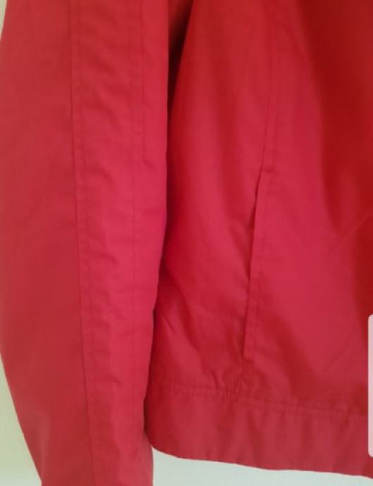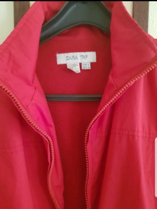 Zara crvena jakna, podstavljena flisom, vrlo malo nošena, bez tragova nošenja, kao nova. Deklarirana vel je L ali definitivno je manji model. Ramena 41 cm, rukavi 62 cm, prsa 51cm