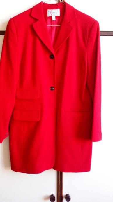 Proljetno - jesenski crveni sako od kvalitetnog, materijala, Veličina 38. Opseg u prsima 94 cm. Dužina sakoa 80 cm. Dužina rukava 57 cm. Lagano postavljen. Samo jednom nošen, u odličnom stanju.