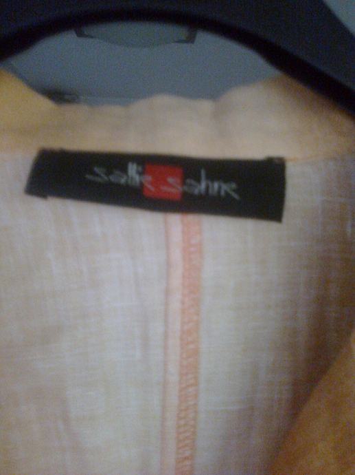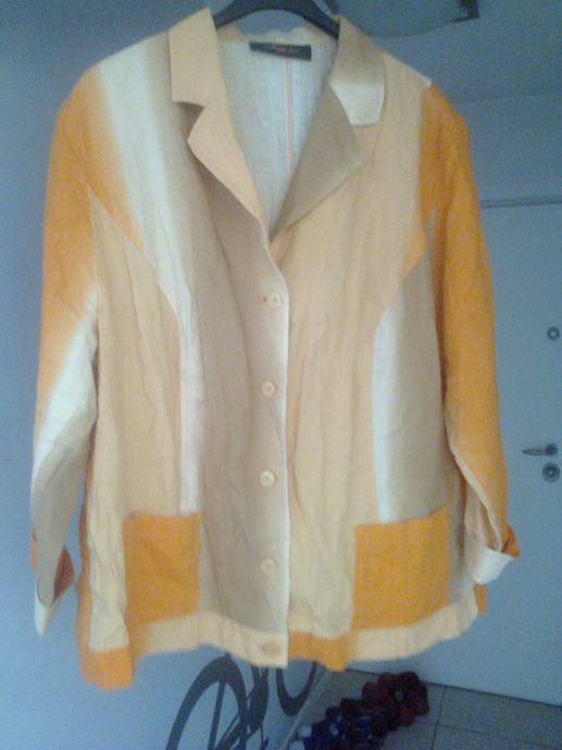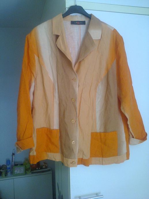 Predivan dizajnirani narančasti sako. Nigdje oštećen. ima još s unutarnje strane rezervni gumb. Na prednjici su dva narančasta džepa. 100 % lan.