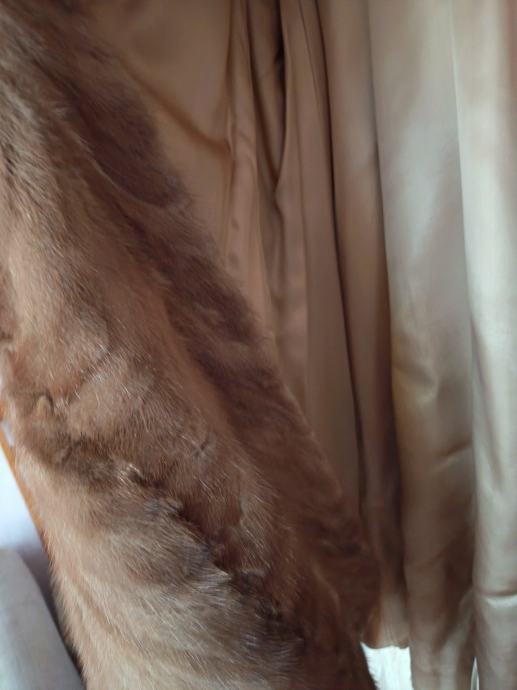 Prodajem dugu nercovu bundu u bež tonu, veličine 38. Bunda je dugačkog kroja koji seže do ispod koljena, s malim ovratnikom i dekorativnim gumbima pri zatvaranju. Postava je u toploj bež boji koja lijepo prati vanjski izgled. Izrađena je od pravog nerca, mekanog i gustog krzna.
