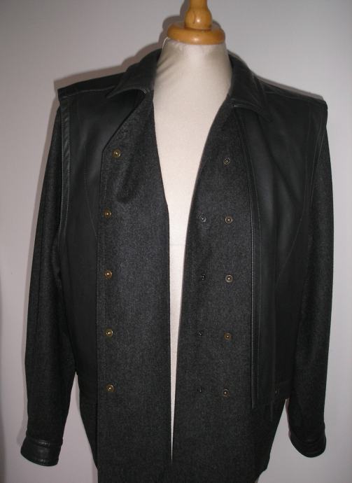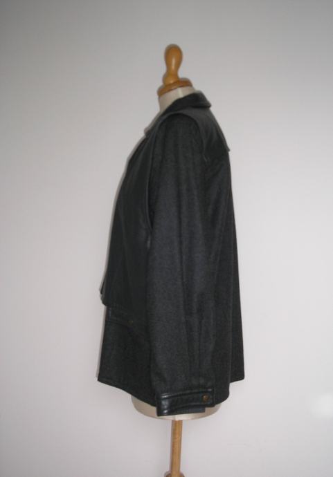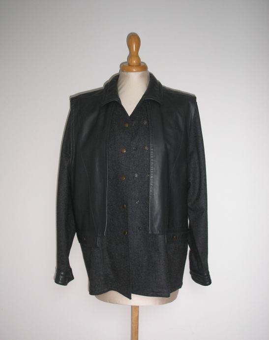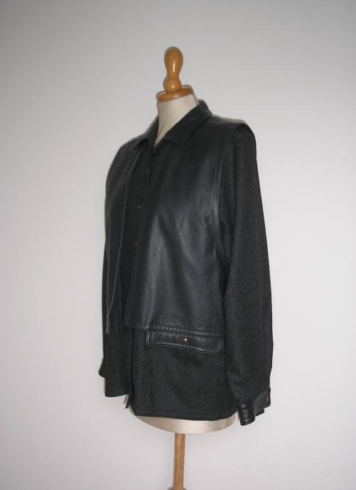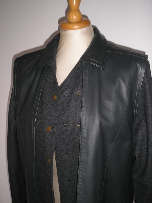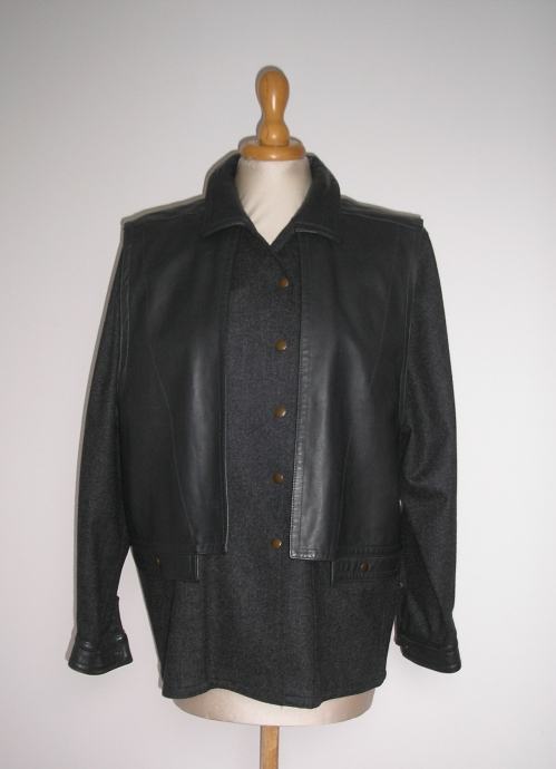 Vrlo zanimljiv kroj kao da jaknica od vune i prsluk od prave kože