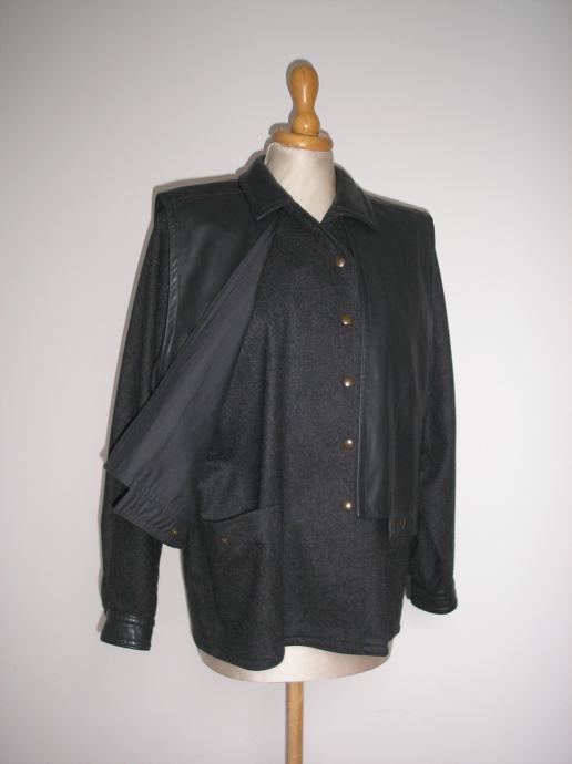 Escada Original siva jakna od vune ( virgin wool ) i elementima od prave kože