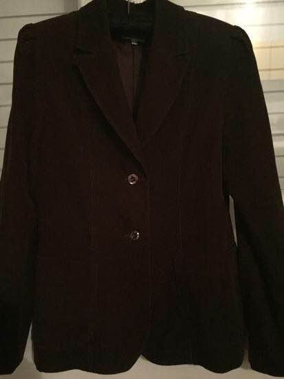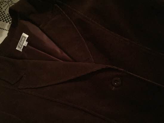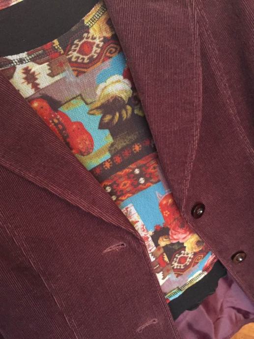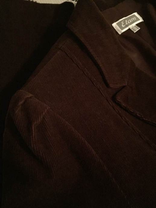 ETAM efektna jakna sako od prugastog mekanog samta boje vina...slika s neta kao prikaz sličnog modela odijela ...pamuk ugodan na dodir...kvalitetan prugasti samt pliš ..saten podstava...efektno blago naborana ramena...hlače ravnog kroja nogavica.....vel.38-40...made in France..kao novo!