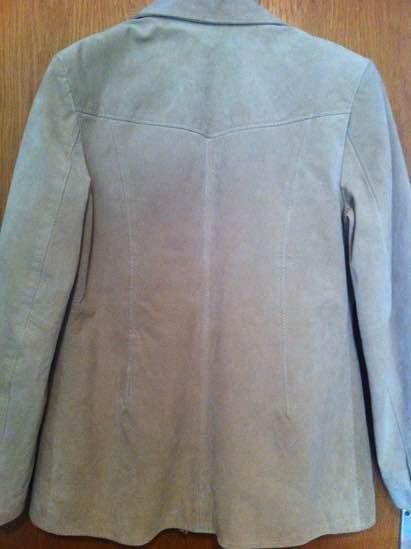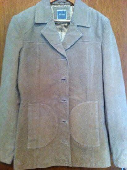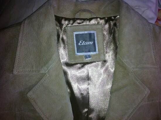ETAM bež jakna od prave brušene kože..saten podstava..dulji model..vel.M-L..dekl.L....boho vintage style..lagani trapez...