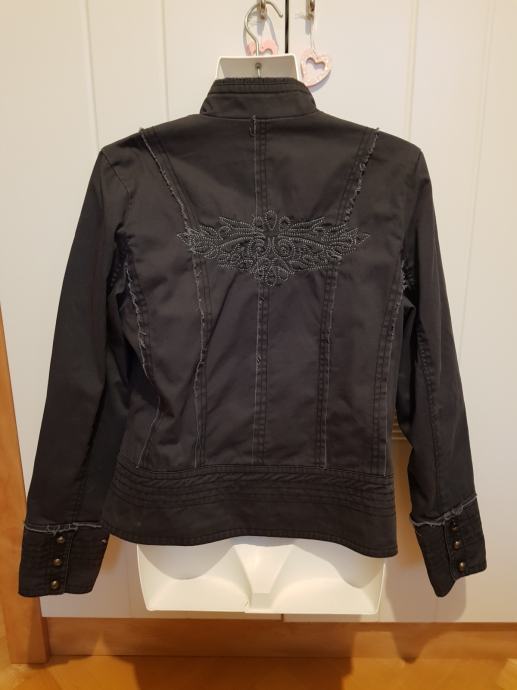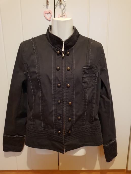 Ženska jakna Broadway (Europa 92) na kopčanje, gumbi su ukras. Maslinasto sive boje, vel. piše L-40.