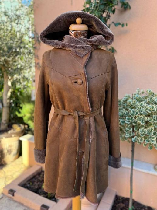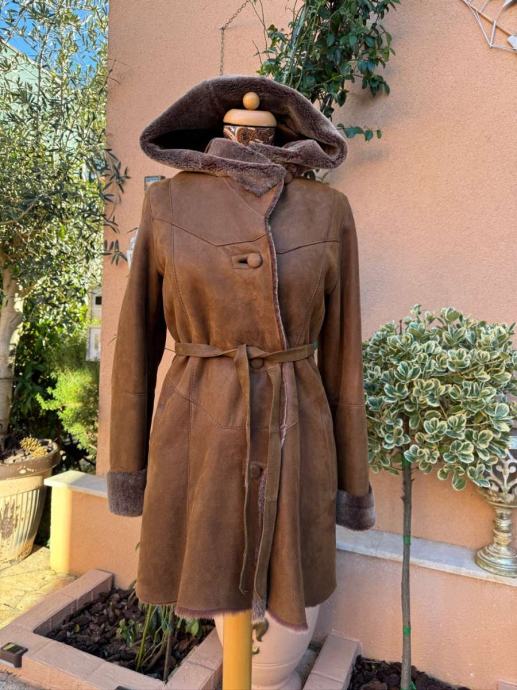 Jakna od janjećeg krzna s kapuljačom, pravo krzno, prava koža. Novo