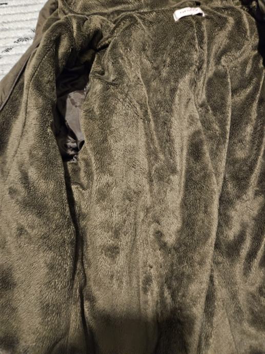 Topla jer iznutra ima krzno,veze se u struku a moze se povezat i na donjem dijelu