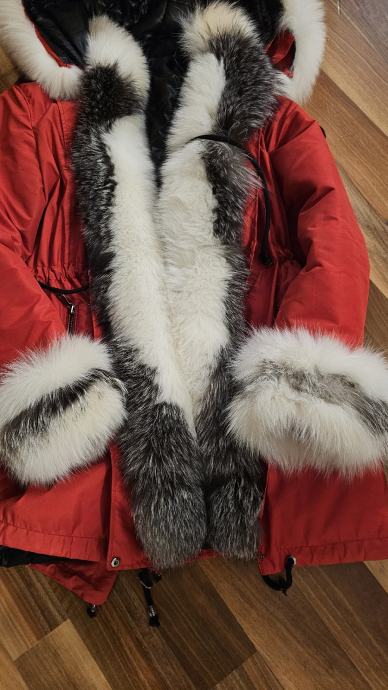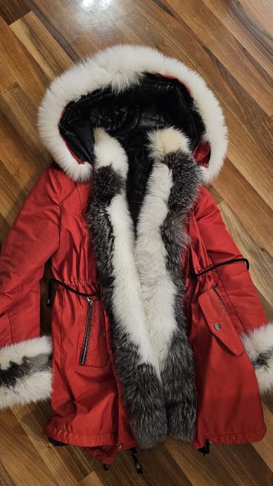 Vel M,nošena 1 sezonu, kupljena u BG,placena 350e,kvalitetna,crvene boje.pravo krzno