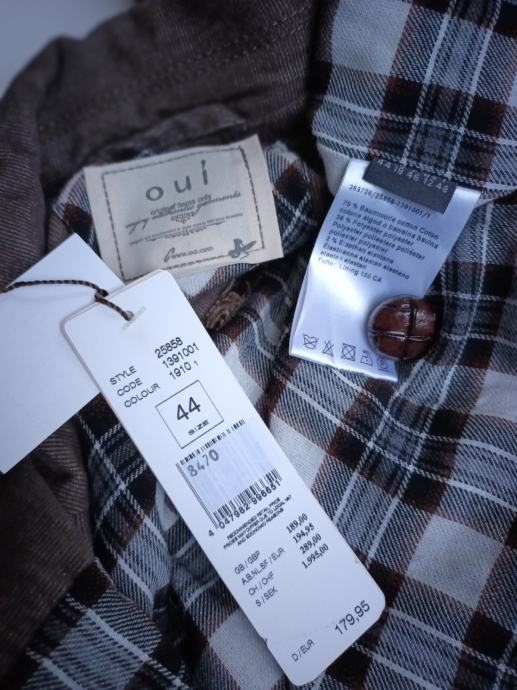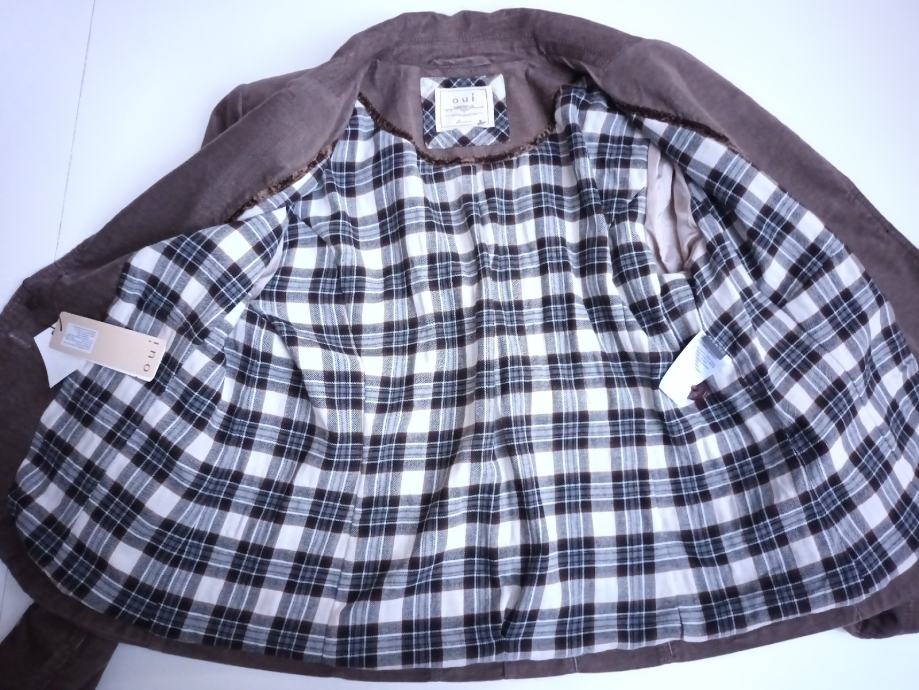 Jakna sako samt oui novo 44 sa etiketama nabavna cijena 194,95€ izuzetna prilika za malo novaca vrhunska kvaliteta koju ćete nositi godinama 70% pamuk i poliester i 2%elastin, sa svim etiketama i rezervnim gumbom mekana topla i ugodna duljina 64cm po sredini leđa širina u ramenima 42cm od pazuha do pazuha 53cm